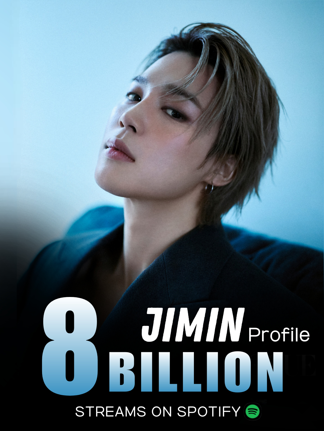 지민은 최근 스포티파이 개인 프로필 80억 스트리밍을 달성했다. 총 34곡의 트랙으로 80억 스트리밍을 넘어선 지민은 한국 가수 중 7번째로 많이 스트리밍된 가수이며, 두번째로 많은 스트리밍을 기록한 솔로 가수이기도 하다.
