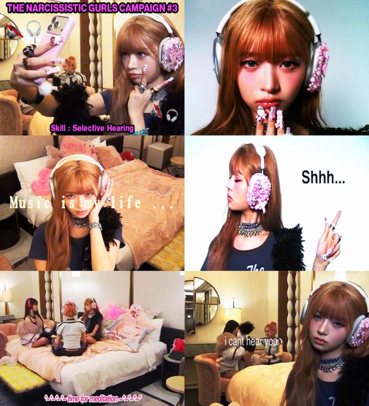 공개된 사진과 짧은 영상에는 두 멤버가 각자의 방식으로 자기애를 정의하는 장면들이 담겼다. 먼저 레이는 키치하게 꾸며진 헤드폰과 네일아트가 돋보이는 스타일링으로 트렌디한 무드를 완성했다. 'Skill : Selective Hearing(선택적 청취)'이라는 자막과 함께 주변의 소란 속에서도 자신의 세계와 음악에 몰입하는 레이의 모습은 타인의 시선이나 상황보다 자신의 내면과 좋아하는 것에 집중하는 주체적인 태도를 드러냈다. 특히 멤버들과 둘러앉아 명상에 집중하는 장면에서는 "나는 그냥 예쁘다 / 이유는 없다 / 존재가 이유다"라는 나레이션이 더해지며, 나르시시즘을 당당한 자기 긍정의 에너지로 풀어냈다.