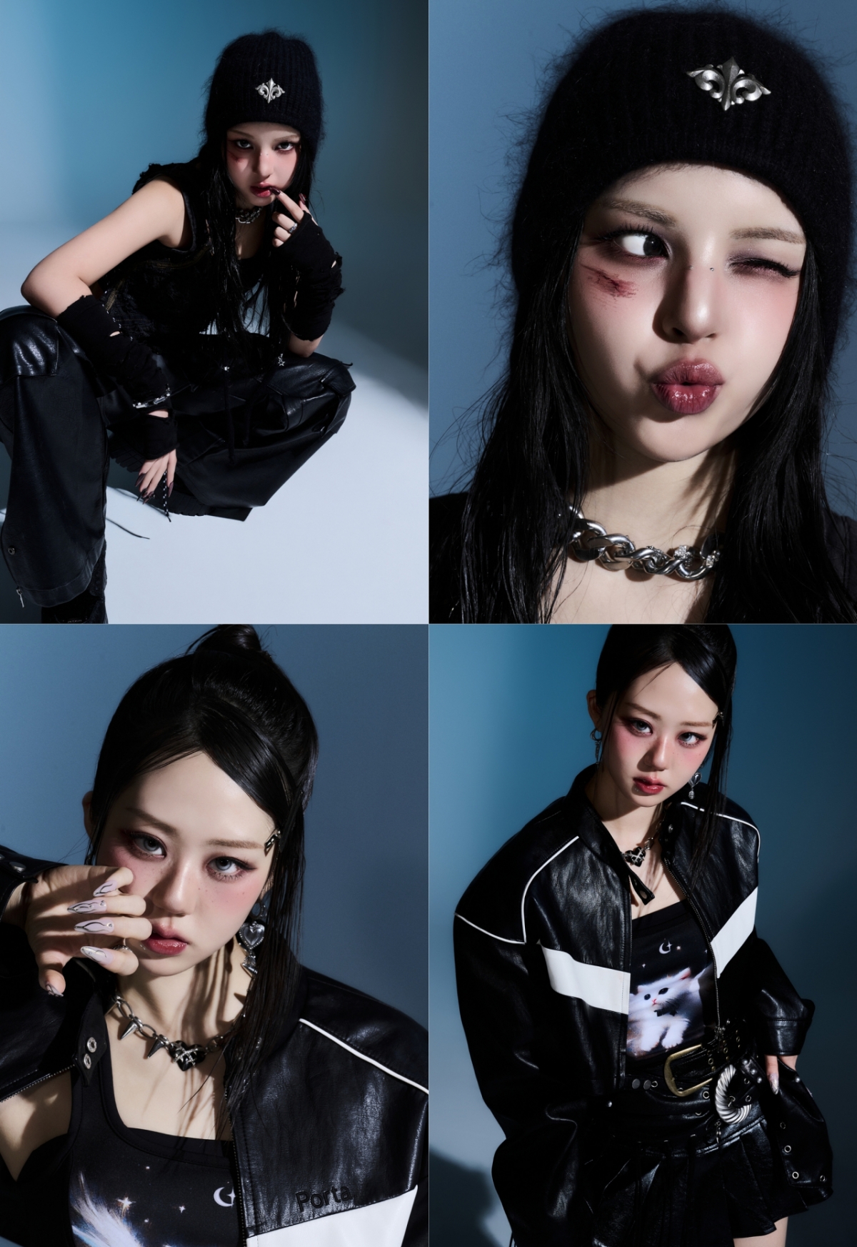윤지는 '초코 반장'이라는 키워드 아래 차분하면서도 단단한 카리스마를 보여준다. 청순한 이미지 속에서도 흔들림 없는 눈빛과 절제된 표정은 리더십을 떠올리게 하며, 얼굴에 더해진 상처 디테일은 강단 있는 분위기를 배가시킨다. 부드러움과 강인함이 공존하는 윤지만의 대비가 인상적이다.