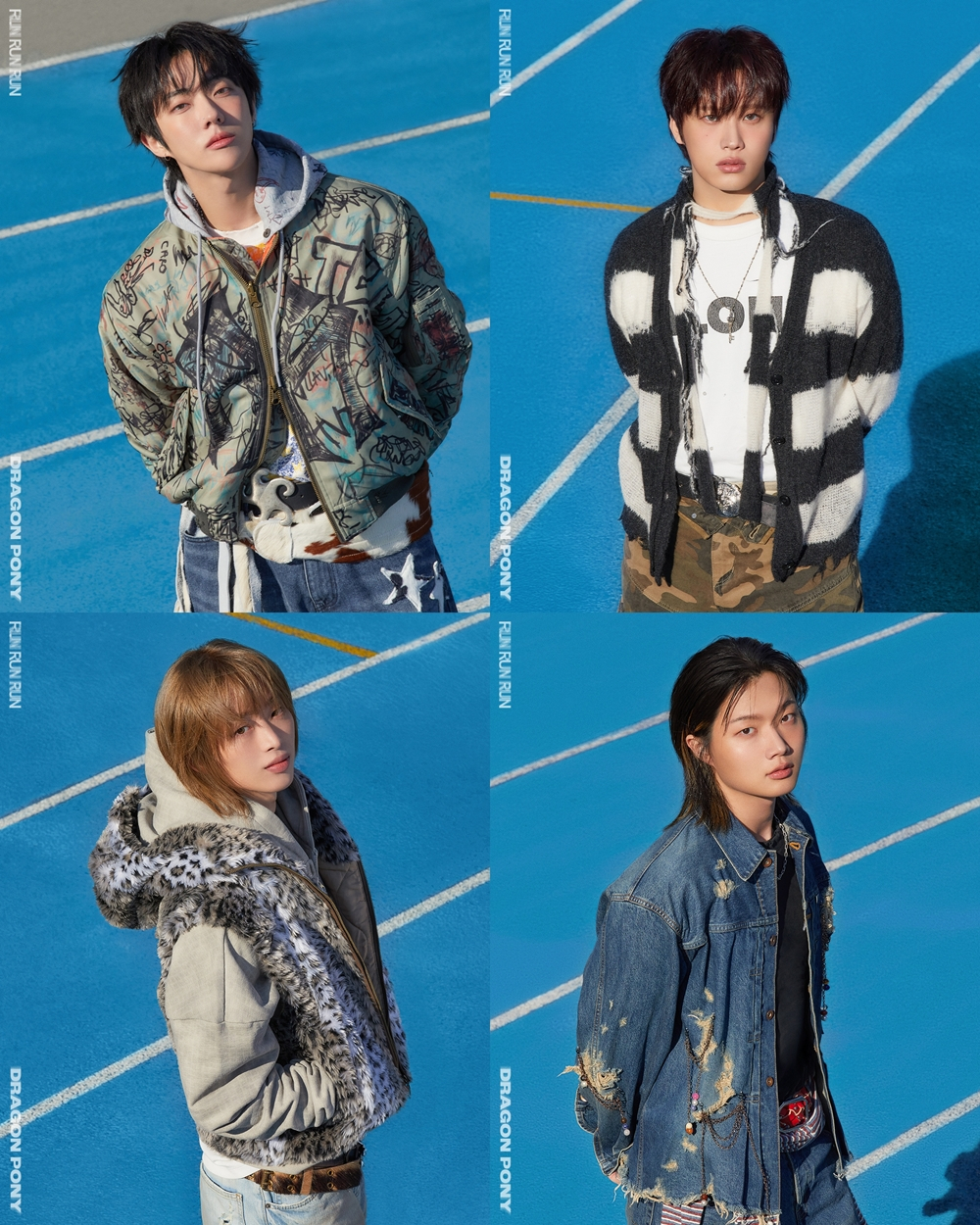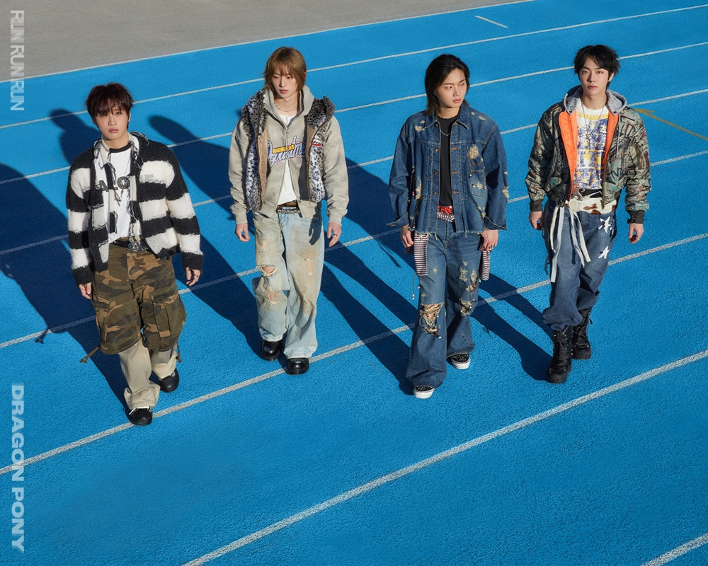 공개된 사진 속 드래곤포니는 육상 트랙 위를 거침없이 가로지르고 있는 모습이다. 같은 방향을 향해 나아가는 네 멤버의 발걸음에서는 흔들림 없는 의지와 앞으로의 행보에 대한 확신을 느낄 수 있다.