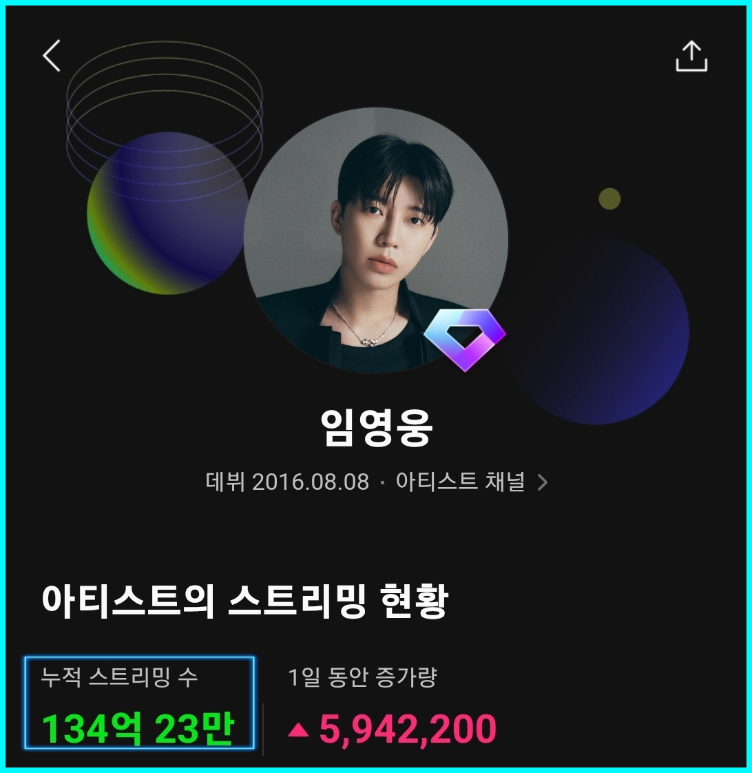 임영웅은 앞서 2024년 6월 18일, 누적 스트리밍 100억 회를 넘어서며 멜론 '다이아 클럽'에 이름을 올린 바 있다. 현재 이 클럽에는 글로벌 그룹 방탄소년단(BTS)과 임영웅만이 속해 있으며, 솔로 가수로서는 임영웅이 독보적인 1위 기록을 보유하고 있다.