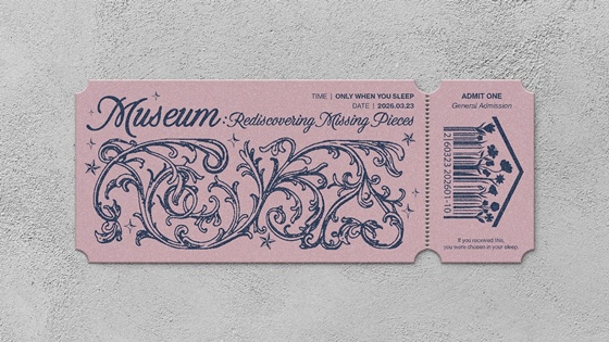 특히 티켓에는 데뷔 타이틀곡명인 '뮤지엄(MUSEUM)'이 선명하게 새겨졌다. 현실에서 누구나 소중히 간직했던 잃어버린 꿈의 조각들을 꿈속 세상에 전시한다는 서정적인 이야기를 예고하며 보는 이들의 감성을 자극한다.