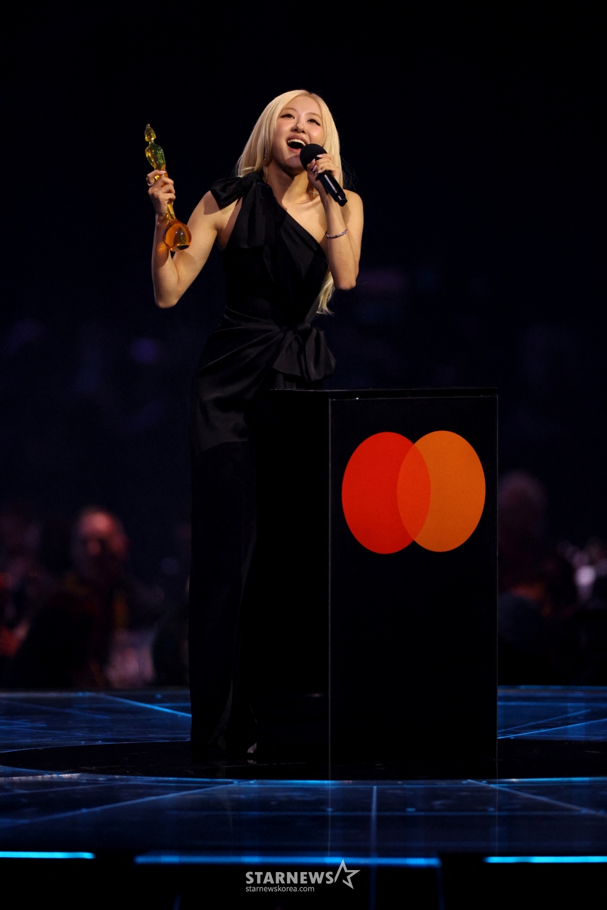 그룹 블랙핑크의 로제가 K팝 가수 최초로 영국 '브릿 어워즈'에서 수상의 기쁨을 누렸다.