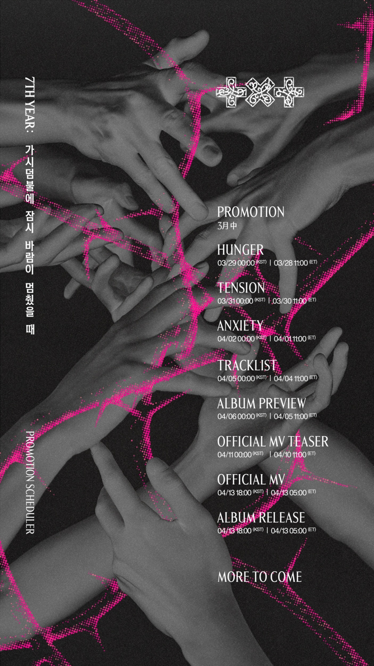 오는 3월 29일부터 4월 2일까지 'HUNGER', 'TENSION', 'ANXIETY' 버전의 사진이 추가적으로 베일을 벗는다. 이후 4월 5일 트랙리스트, 4월 6일 앨범 프리뷰가 공개돼 신보 윤곽이 드러난다.