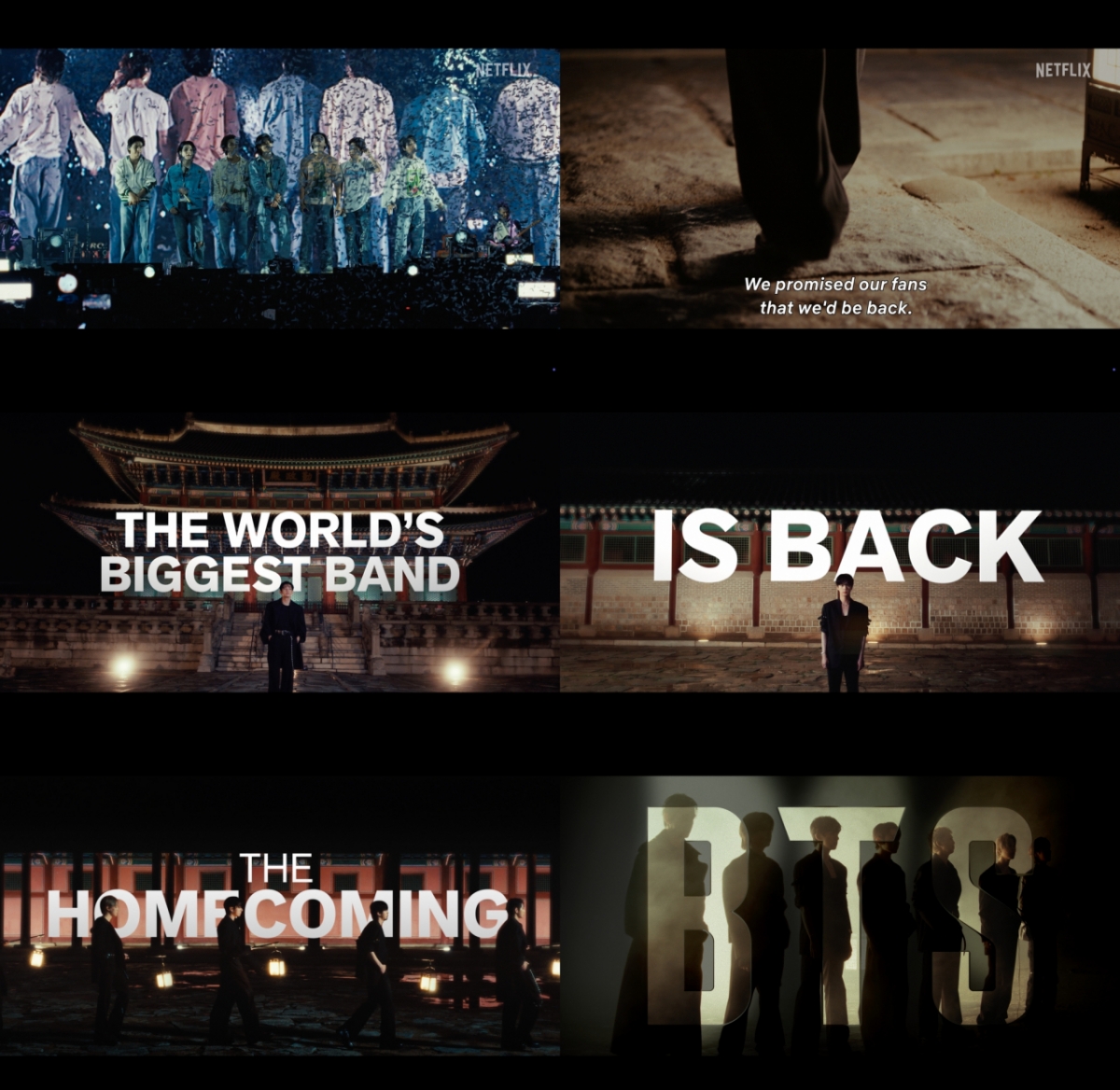 이어 RM의 "We promised our fans that we'd be back"이라는 내레이션과 함께 경복궁으로 장면이 전환된다. 멤버들은 낮과 밤이 교차하는 경복궁을 배경으로 강렬한 존재감을 드러낸다. 또한 "THE WORLD'S BIGGEST BAND IS BACK"(세계 최정상의 그룹이 돌아온다), "WITNESS THE HOMECOMING"(그들의 귀환을 목도하라)이라는 문구가 등장해 컴백에 대한 기대감을 최고조로 끌어올린다.