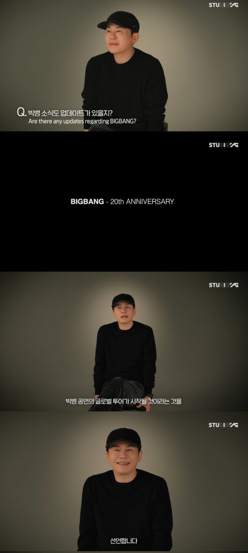 여러 골자 중 단연코 1번 뉴스는 빅뱅의 데뷔 20주년 활동 재개였다. 양현석 총괄은 "빅뱅 멤버들과 공연을 개최하기로 합의한 상태"라고 밝히고 빅뱅의 20년 음악 여정을 기념하는 동시에 오랜 시간 K팝 시장의 흐름을 함께 만들어온 YG와 빅뱅만이 가진 YG 패밀리십의 견고함을 선언했다.