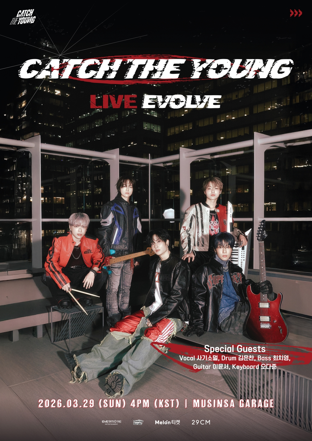 캐치더영(강산이, 안기훈, 김남현, 이준용, 최정모)은 오는 29일 오후 4시 서울 무신사 개러지에서 단독 콘서트 'LIVE EVOLVE(라이브 이볼브)'를 개최한다.