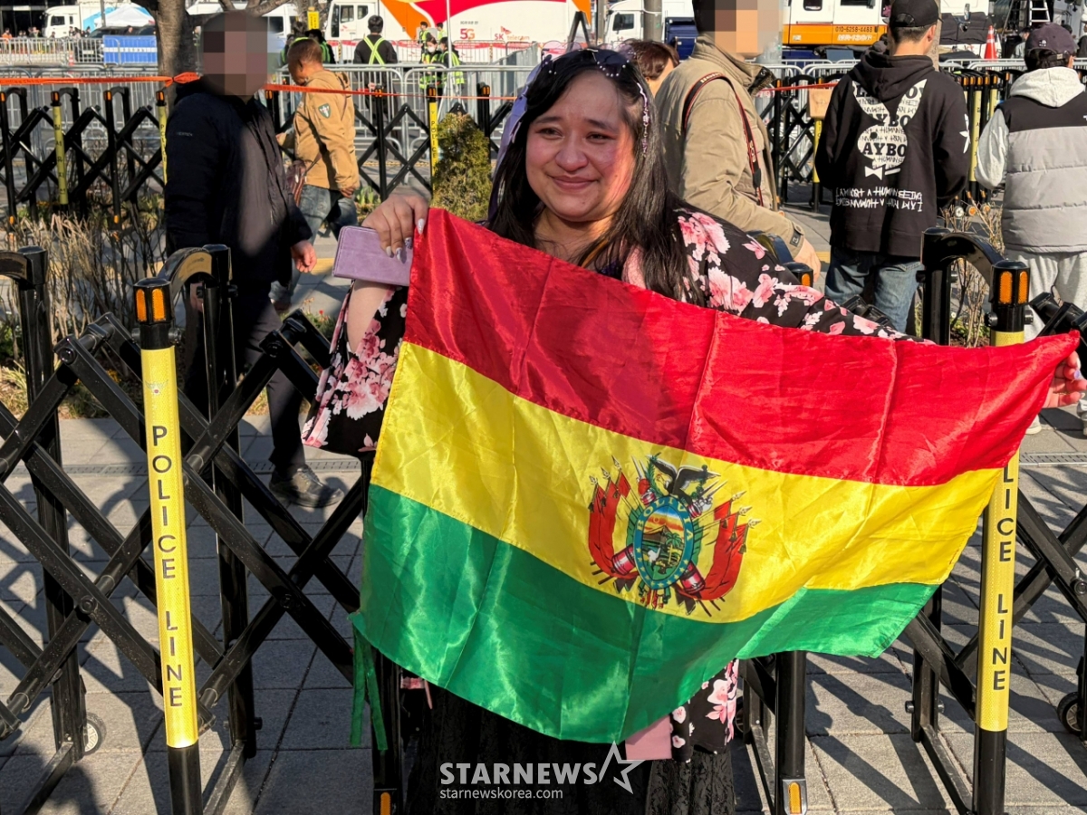이날 광화문 광장에서 스타뉴스 취재진을 만난 마리아 호세는 볼리비아에서 온 25세 여성 아미(팬덤명)다. 이번이 한국 첫 방문이라는 마리아 호세는 "한국 첫 방문인데 내가 이렇게 광화문에 왔다는 것도 신기하다. 이번에 공연 티켓팅에 실패해서 너무 슬프다. 비록 가까이에서 공연은 못보지만, 멀리서라도 볼 수 있어서 행복하다"라고 밝혔다.