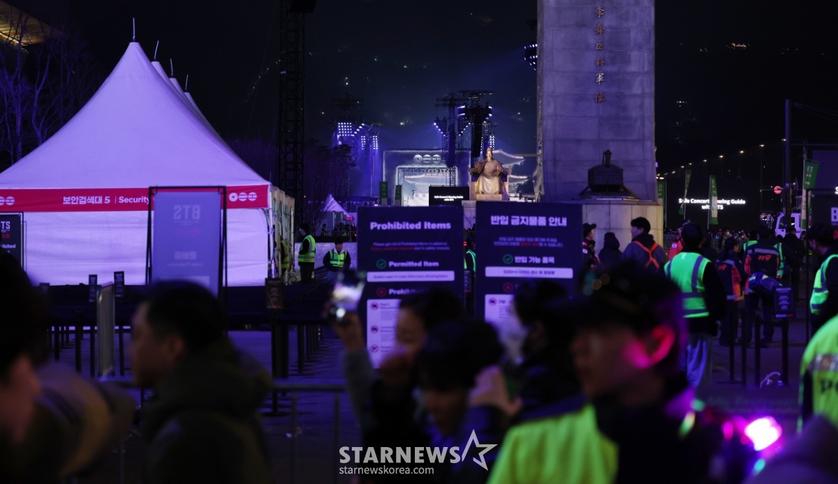 연예K-POP보라빛으로 물든 광화문 광장[★포토]발행 : 2026.03.21 ・ 19:43김휘선 기자방탄소년단(BTS) 컴백 공연 당일인 21일 팬들과 시민들이 서울 종로구 광화문 광장에 마련된 공연장 인근을 지나고 있다. /2026.03.21<저작권자 © 스타뉴스, 무단전재 및 재배포 금지>브리핑방탄소년단(BTS) 컴백 공연 당일인 21일, 팬들과 시민들이 서울 종로구 광화문 광장에 마련된 공연장 인근을 지나갔다. 광화문 광장은 보라빛으로 물들었다. 이는 방탄소년단 컴백 공연과 관련된 풍경이었다.추천 기사김휘선 기자기자홈좋아요연예-K-POP의 인기 급상승 뉴스연예-K-POP의 최신 뉴스AD
