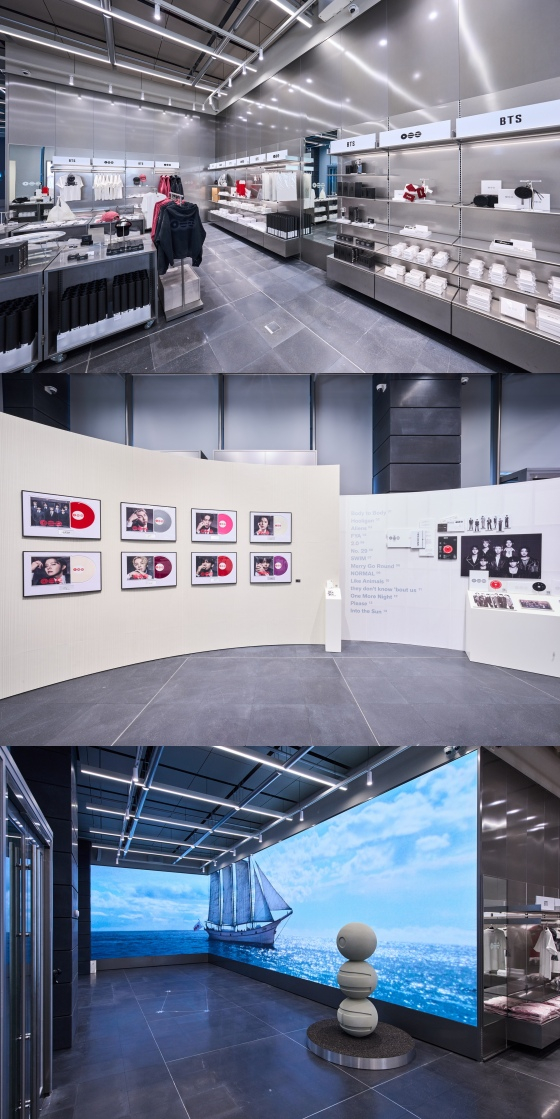 공간 정면에는 두 개의 벽면을 뒤덮는 폭 17.5m, 높이 4m의 대형 미디어월이 위치해 방문객들의 시선을 사로잡는다. 이 곳에는 아티스트의 뮤직비디오 등 각 앨범과 팝업의 테마를 반영한 영상들이 상영되며 몰입감 있는 분위기를 연출할 전망이다.