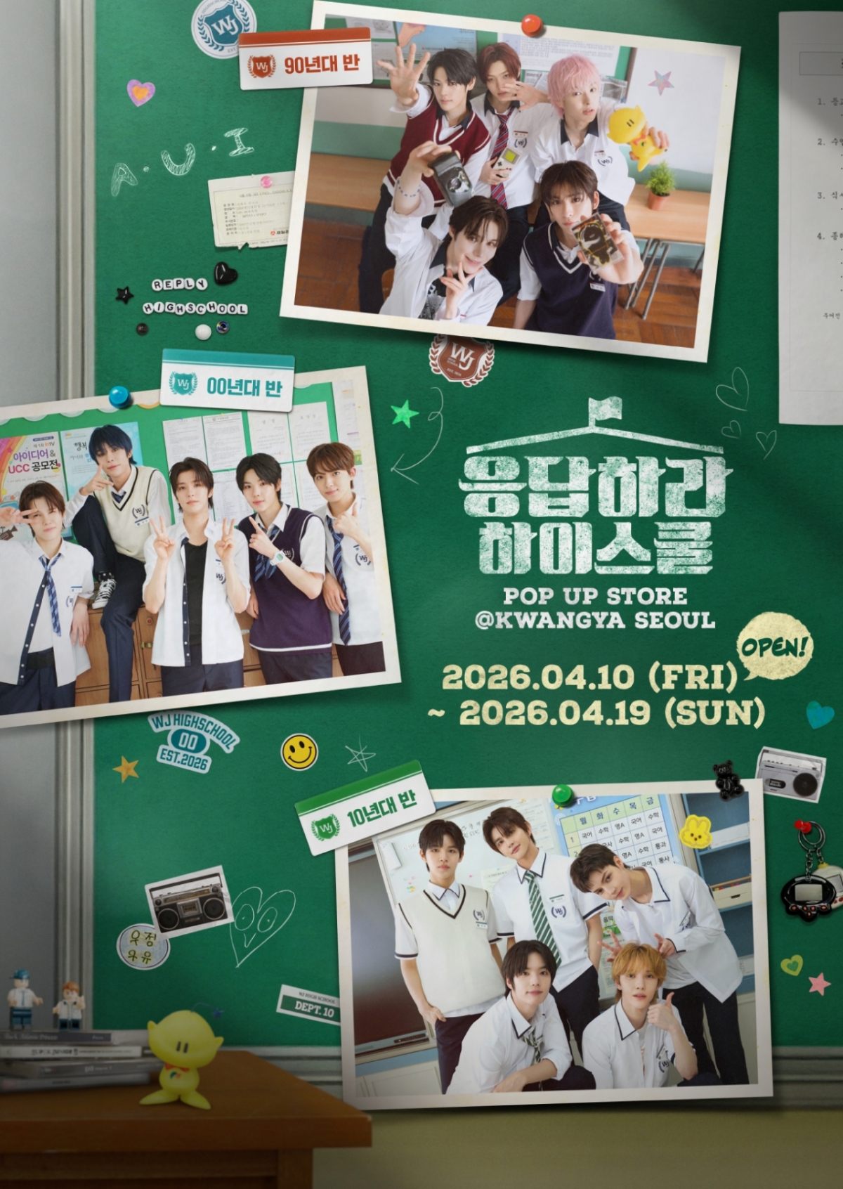 SMTR25 예능 '응답하라 하이스쿨' 팝업 스토어는 오는 4월 10일부터 19일까지, 총 10일간 서울 성수동 SM엔터테인먼트 본사 지하 1층에 위치한 광야 서울(KWANGYA SEOUL)에서 진행된다.