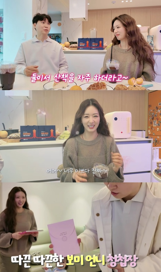 윤보미는 "먼저 또 연락이 와서 (결혼) 축하해주시고 진짜 깜짝 놀랐다"고 했다. 이어 그는 이들 부부에게 청첩장을 전달해 눈길을 끌었다.