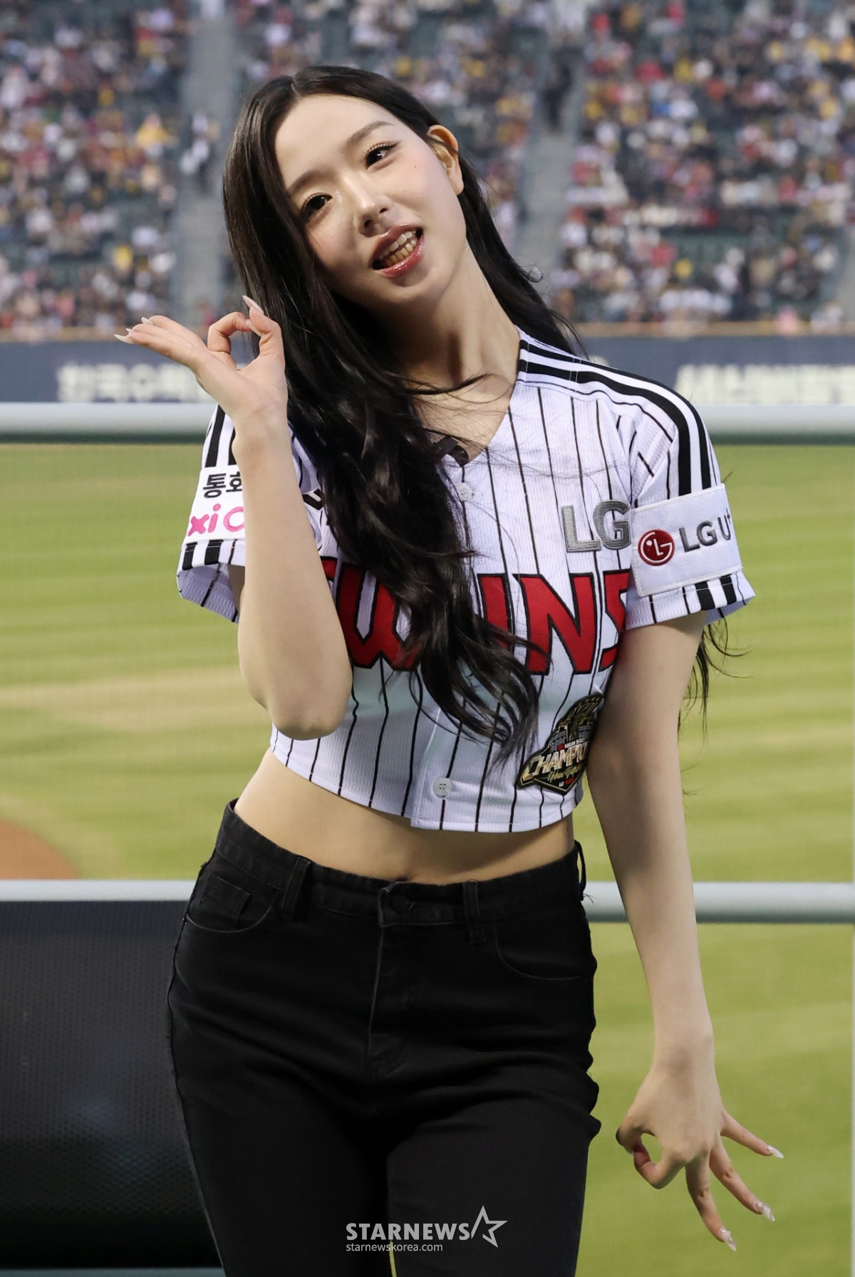 연예K-POP[포토] 김채연 '스페셜 치어리더 OK'발행 : 2026.04.02 ・ 19:02조회수 :잠실=김진경 대기자2026 신한 SOL KBO리그 LG 트윈스 대 KIA 타이거즈 경기가 2일 서울 잠실야구장에서 열렸다.걸그룹 트리플에스(tripleS) 멤버 김채연이 LG 승리기원 시구를 하고 있다.<저작권자 © 스타뉴스, 무단전재 및 재배포 금지>브리핑추천 기사김진경 대기자기자홈좋아요연예-K-POP의 인기 급상승 뉴스연예-K-POP의 최신 뉴스AD