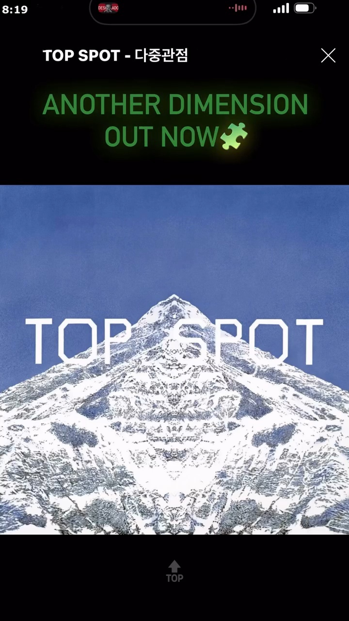 탑은 3일 오후 6시 주요 온라인 음원 사이트를 통해 자신의 첫 번째 솔로 정규앨범 '다중관점'(ANOTHER DIMENSION)을 발매했다. 이런 가운데 지드래곤은 자신의 개인계정에 탑의 신고 홍보글을 올렸다. 무엇보다 이미지에는 8시 19분이라고 찍혀있는데 이를 두고 빅뱅의 데뷔일인 8월 19일에 맞췄다는 이야기가 나오며 빅뱅 재결합을 향한 관심도 높아지고 있다.