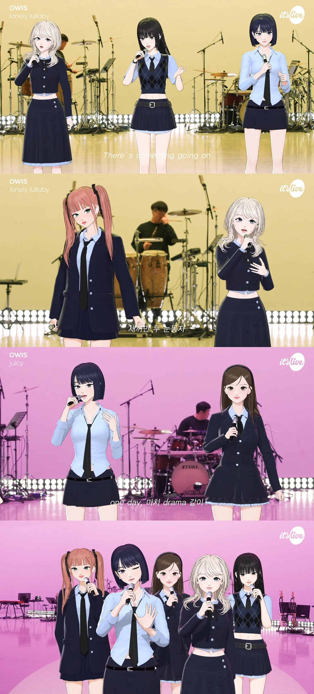 수록곡 'lonely lullaby'(론리 럴러바이)와 'juicy'(쥬시) 무대에서는 OWIS의 폭넓은 음악성이 돋보였다. 이들은 가성을 넘나드는 클래식 재즈와 달콤한 알앤비 팝 감성을 고루 소화했다. 멤버들은 추임새와 함께 무대 자체를 즐기는 모습으로 보는 이들에게 기분 좋은 에너지를 전달했다.