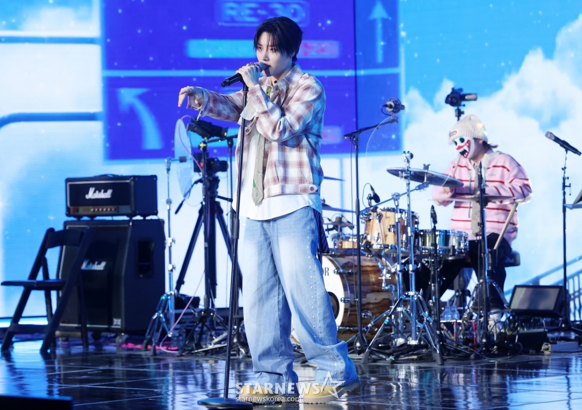 그룹 하츠웨이브 리안이 8일 서울 마포구 문화비축기지에서 진행된 첫 번째 미니앨범 'The First Wave' 발매 기념 쇼케이스에서 멋진 무대를 선보이고 있다. /2026.04.08