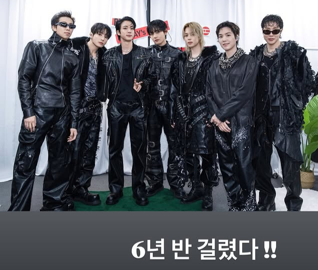 9일 RM은 개인 SNS에 "6년 반 걸렸다"라며 정국, 진, 뷔, 지민, 슈가, 제이홉과 함께 찍은 단체 셀카를 게재했다.