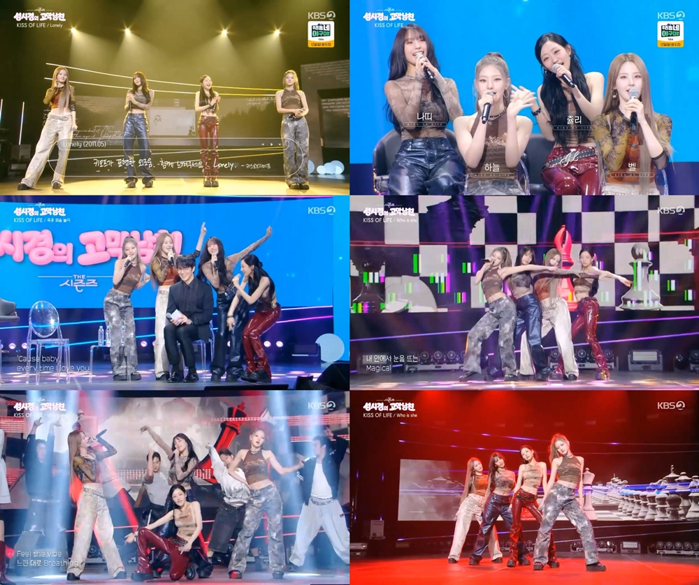 KISS OF LIFE(키스오브라이프)는 지난 10일 방송된 KBS 2TV '더 시즌즈 - 성시경의 고막남친'에 출연했다. 이들은 롤모델인 2NE1의 'Lonely'를 선곡, 오직 네 멤버의 개성 넘치는 보컬과 조화로운 화음만으로 서정적인 무대를 완성하며 시청자들을 매료시켰다.