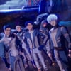 이날 지민은 낮게 묶은 금발머리에 '북부대공'이라는 새로운 수식어를 만들어낸 그 모습 그대로 카리스마 넘치게 등장해 순식간에 관객들의 시선을 사로잡았다.