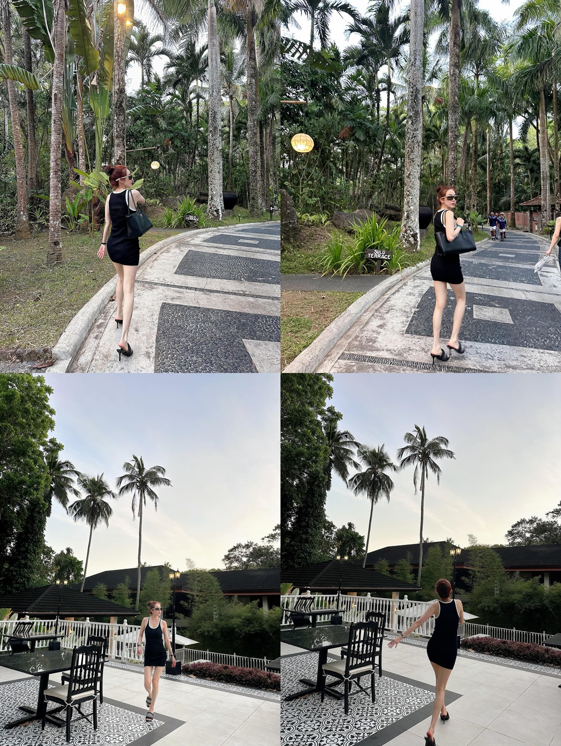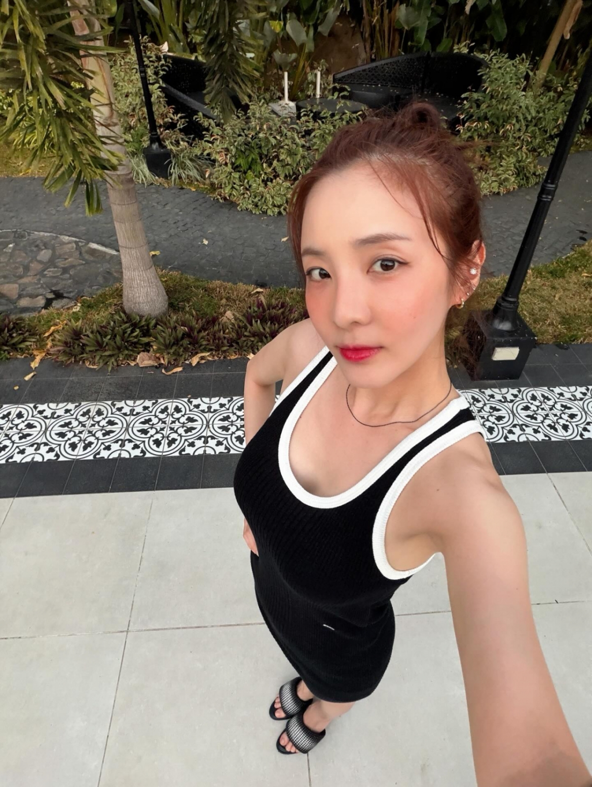 사진 속 산다라박은 민소매 블랙 슬림 미니 원피스를 입고 필리핀 휴양지에 간 모습이었다.