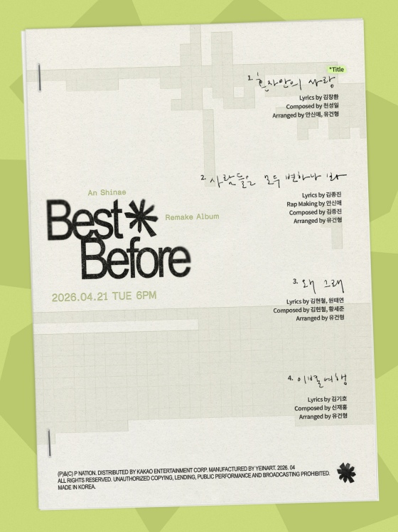 한편, 안신애의 리메이크 앨범 'Best Before'는 21일 오후 6시 각종 온라인 음원 사이트를 통해 발매된다.