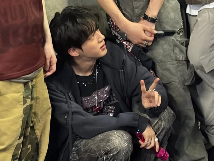진은 지난 19일 자신의 인스타그램을 통해 사진을 공개했다. 도쿄돔 콘서트를 끝낸 방탄소년단 멤버들 사이에서 쪼그려 앉아 손가락으로 브이를 그리고 있는 '비주얼 킹' 진의 조각 같은 코와 깎은 듯한 턱선, 크고 아름다운 눈과 도톰한 입술이 시선을 집중시켰다. 진은 글로벌 앰버서더인 프랑스 하이 주얼리 브랜드 프레드(Fred) 반지와 목걸이 등을 착용했으며 자신의 트레이드 마크인 핑크 마이크를 든 눈부신 비주얼이다.