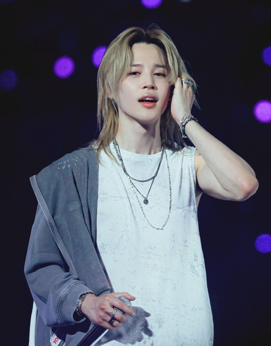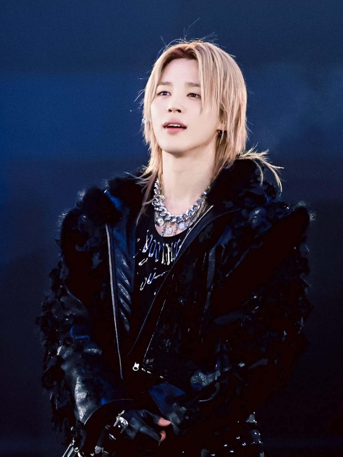 지민은 이제 트레이드 마크가 된 긴 금발 머리를 흩날리며 남신급 아우라로 무대에 등장해 오프닝곡 '훌리건'과 '달려라 방탄' 무대에서 이전의 북부대공 수식어를 만들어준 의상보다 조금 더 가벼워진 새로운 착장을 선보이며 완벽한 춤 선으로 무대를 휘어잡았다.