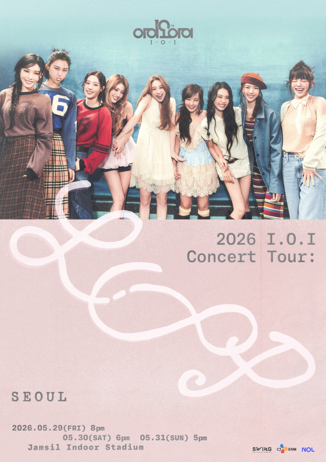 29일 아이오아이(임나영, 청하, 김세정, 정채연, 김소혜, 유연정, 최유정, 김도연, 전소미)는 공식 SNS 채널을 통해 '2026 I.O.I Concert Tour: LOOP(2026 아이오아이 콘서트 투어: 루프)' 서울 공연의 메인 포스터 이미지를 게재했다.