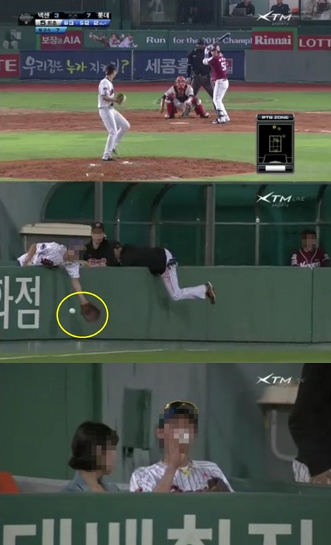 지난 1일 부산 사직구장에서 열린 '2012 팔도프로야구' 롯데 자이언츠와 넥센 히어로즈와의 경기 도중 공을 잡은 관중이 퇴장당하는 보기 드문 장면이 발생해 프로 야구 팬들의 눈살을 찌푸리게 만들었다.