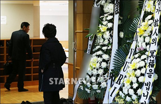 [★포토]김성수 전 부인 빈소 앞 '아이엠유리' 조화발행 : 2012.10.17 ・ 16:33이동훈 기자그룹 쿨 출신 가수 김성수의 전 부인 강 모(36)씨가 폭행시비로 숨진 17일 오후 서울 한남동 순천향병원에 마련된 고인의 빈소 앞에, 최초 사망설에 휩싸였던 가수 유리가 운영하는 쇼핑몰 명의의 조화가 놓여 있다.<저작권자 © 스타뉴스, 무단전재 및 재배포 금지>김성수전부인추천 기사이동훈 기자기자홈좋아요 -의 인기 급상승 뉴스-의 최신 뉴스