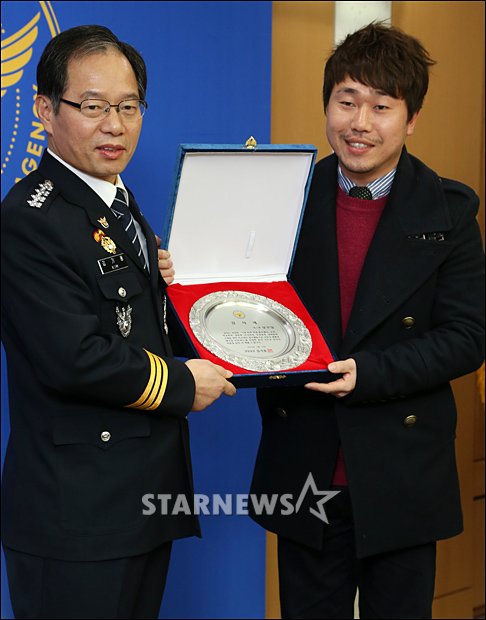 [★포토]양선일 '5대폭력척결 홍보대사 됐어요'발행 : 2013.02.15 ・ 16:34이동훈 기자개그콘서트 용감한 녀석들 팀의 개그맨 양선일이 15일 오후 서울 서대문구 경찰청에서 열린 '5대폭력 척결 홍보대사 위촉식'에 참석해 김기용 경찰청장으로부터 위촉장을 받고 있다.<저작권자 © 스타뉴스, 무단전재 및 재배포 금지>폭력척결홍보대사용감한녀석들추천 기사이동훈 기자기자홈좋아요 -의 인기 급상승 뉴스-의 최신 뉴스