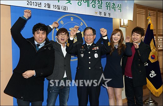 [★포토]우리가 바로 5대폭력척결 홍보대사!발행 : 2013.02.15 ・ 16:37이동훈 기자개그콘서트 용감한 녀석들 팀이 15일 오후 서울 서대문구 경찰청에서 열린 '5대폭력 척결 홍보대사 위촉식'에 참석해 김기용 경찰청장과 기념촬영을 하고 있다.<저작권자 © 스타뉴스, 무단전재 및 재배포 금지>폭력척결홍보대사용감한녀석들추천 기사이동훈 기자기자홈좋아요 -의 인기 급상승 뉴스-의 최신 뉴스