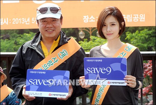 배우 이효정, 탤런트 김유리가 11일 오전 서울 도봉산 야외무대에서 열린 '등산로 생명나눔 캠페인'에 참석해 포즈를 취하고 있다.