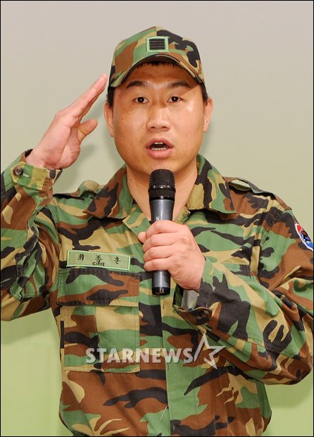 케이블채널 TvN 드라마 푸른거탑에 출연중인 배우 최종훈이 21일 오전 서울 중구 태평로1가 한국프레스센터에서 열린 '2013 공정병역 협약식'에서 거수경례를 하고 있다.