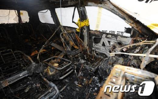 가수 손호영씨가 자신의 차량에서 번개탄을 피워 자살을 시도한 24일 오전 서울 용산구 원효로 사고지역 인근에 손 씨의 사고 차량이 주차되어 있다. 손씨는 신체 일부에 화상을 입기는 했지만 생명에는 지장이 없는 상태이다 .2013.5.24/뉴스1