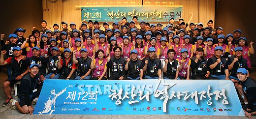 [★포토]파이팅 외치는 '제12회 청산리 역사대장정'발행 : 2013.07.05 ・ 22:43해림(중국)=이기범 기자5일 오후 중국 해림 한중우의공원 대강당에서 열린 '제12회 청산리 역사대장정' 수료식에서 대원들이 기념촬영을 하고 있다.지난 2001년부터 매해 진행된 '청산리 역사대장정'은 중국 북만주 일대의 항일독립운동 전적지와 우리의 역사, 우리의 문화가 실재하고 있는 고구려 및 발해의 유적지를 탐방하는 역사 탐방 프로그램이다.<저작권자 © 스타뉴스, 무단전재 및 재배포 금지>청산리역사대장정추천 기사이기범 기자기자홈좋아요 -의 인기 급상승 뉴스-의 최신 뉴스