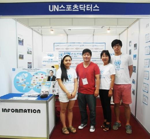 한국마이팜제약의 후원으로 박람회에 참여한 UN스포츠닥터스는 허준영 이사장, 안귀연 자문위원 그리고 인턴십 과정을 밟고 있는 송우재, 한성연 학생들이 참여해 직접 행사를 기획하고 진행했으며 스포츠人 후원을 위한 자리를 마련하는 등 다양한 볼거리를 제공했다.