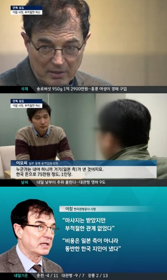 지난 12일 JTBC의 보도에 따르면 이참 한국관광공사 사장은 지난해 설 연휴에 일본 관광회사 부사장의 초청을 받고 관광공사의 용역업체 회장, 임원 등과 함께 일본을 방문했다.