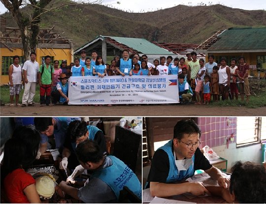 UN DPI(공보국)에 소속된 NGO 스포츠닥터스(이사장 허준영)는 한림대학교 부속 강남성심병원과 함께 태풍 '하이옌'으로 피해를 입은 필리핀 타클로반 지역에서 의료봉사 및 구호활동에 나섰다.