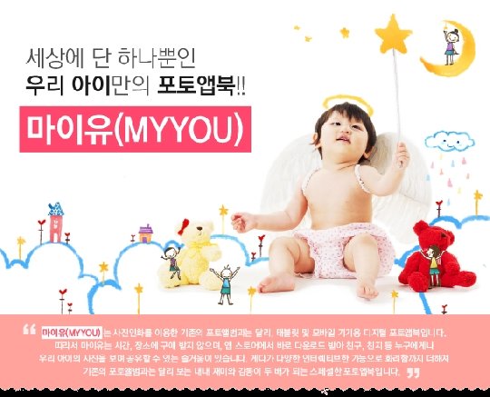 시간과 장소에 구애받지 않고 언제, 어디서든 볼 수 있는 나만의 포토 앱북 '마이유(MYYOU)'가 요즘 엄마들 사이에서 인기다.
