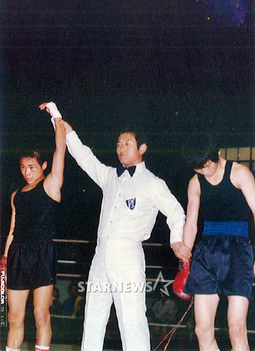 정구 이영래 사범이 받아주는 미트치기를 하고 있다. “원투, 원투, 원투쓰리, 원투 쓰리” 스텝을 밟으며 구령을 외치는 이영래 사범의 표정에 기특함이 담겨있다.