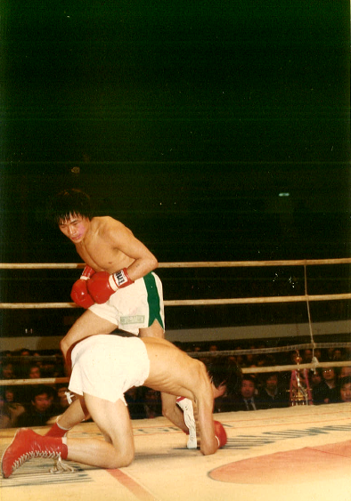 한쪽에선 박태훈이 헤드기어 낀채인 장정구의 어깨를 주물러주며 긴장을 풀어주고 있다.