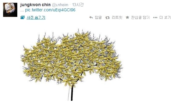 한편, 진중권 교수는 자신의 트위터에 노란 리본이 가득 달린 나무 사진을 게재하며 '노란리본달기 캠페인' 동참했다.