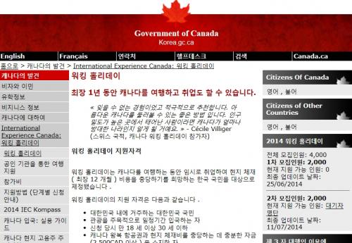 캐나다 대사관, 워킹 홀리데이 2차모집..방법은?