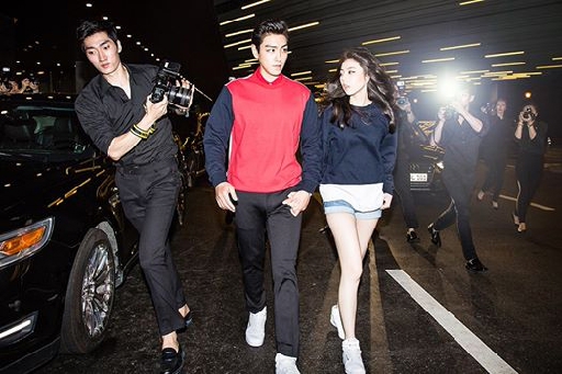 화보 속 탑과 소희는 취재진에게서 도망치면서 손을 잡고 있으며, 시크한 표정을 짓고 있다.