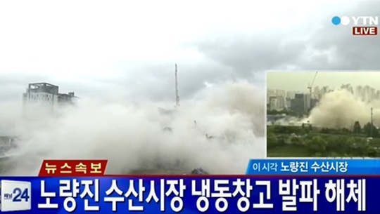 노량진 수산시장 냉동 창고가 발파 해체됐다.