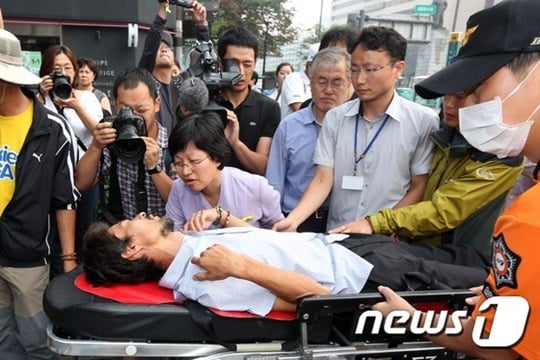 '단식 40일' 47kg 유민아빠 김영오씨, 병원 긴급 후송
