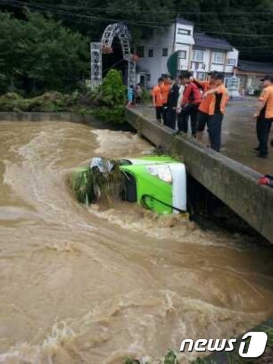 YTN에 따르면 25일 오후 2시 51분께 경남 창원시 마산합포구 진동면을 지나가던 버스가 폭우로 인해 범람한 하천(덕곡천)에 휩쓸렸다. 당시 사고현장을 지나가던 행인 3명이 이를 목격한 뒤 즉시 경찰과 119구조대에 신고했다.