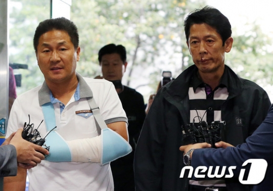 폭행 혐의자 5명 중 김병권 전 세월호 가족대책위원회 위원장과 김형기 전 수석부위원장은 이날 오후 4시 35분가량 서울 영등포경찰서에 출석했다.