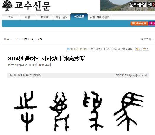 교수들이 뽑은 올 해의 사자성어로 지록위마가 뽑혔다./사진=교수신문 캡쳐